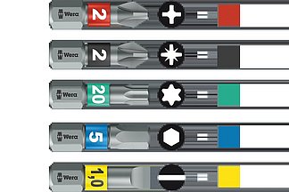 Le nouveau récupérateur d’outils « Take it easy » de chez Wera / Des bandes de couleur attribuent les embouts à un profil spécifique / Tampon…