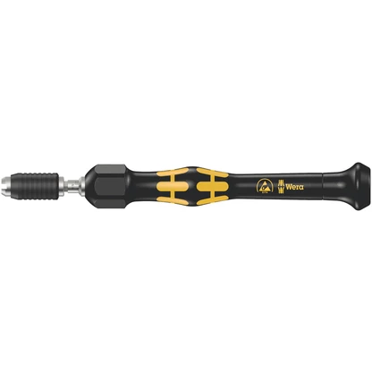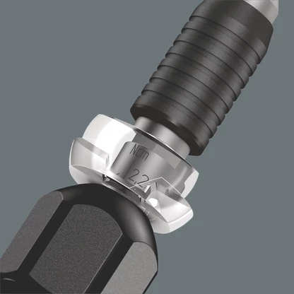 Outil dynamométrique à couple ajustable entre 2,0 et 6,0 cNm (précision ± 10 %). Système à manche/lames interchangeables compact pour vissages de précision nécessitant un contrôle de couple. Le tournevis dynamométrique Kraftform Micro ESD est idéal pour le vissage de précision avec contrôle de couple réalisé sur les composants électrostatiquement sensibles. Convient pour l'admission d'embouts à emmanchement Halfmoon 4 mm (série 9 Wera) et à emmanchement HIOS 4 mm (série 21 Wera). Protégé contre la manipulation. Déclic parfaitement perceptible à l'oreille et au doigt à l'atteinte du couple paramétré. Couple de desserrage manuel illimité. Résistance électrique superficielle ≤ 109 ohms, pour une protection sûre contre l'électricité statique. Fabriqué conformément à la norme DIN EN 61340-5-1. Système à manche plus lames interchangeables, permettant un remplacement éclair de la lame. Manche Kraftform Micro avec crête pivotante et zone de rotation rapide pour un "tortillement" éclair ; le repositionnement fastidieux de la main n'est plus nécessaire. Zone de puissance incluant des zones tendres, pour la transmission de couples de serrage/desserrage élevés. Surplombant directement la lame, la zone de précision garantit quant à elle le bon angle de rotation lors des travaux d'ajustage. Fixation ultra-rapide : pousser simplement l'embout dans l'admission ; verrouillage automatique ; tenue sûre. Pour en changer, faire glisser la douille vers l'avant et retirer l'embout. Douille d'actionnement libre, pour un guidage aisé de l'outil durant le vissage. Embouts convenant pour vissages manuels et mécanisés au tournevis électrique (notamment HIOS, Delvo, Sehan). Exemples d'utilisation : smartphones, téléphones mobiles, appareils photos, appareils électroniques, laboratoires et cabinets dentaires.