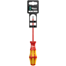 Tournevis Wera VDE (isolé), avec manche Kraftform Plus multicomposants pour un travail rapide et en douceur : zones dures pour une haute vitesse de travail, les zones tendres garantissant quant à elles une transmission de couple élevée. Contrôle unitairement à 10 000 V, pour un travail en toute sécurité sous la tension admissible de 1 000 V. Le repéreur d'outils Take it easy avec repérage couleur en fonction des pointes et des poinçons de taile, pour trouver facilement et rapidement l'outil nécessité. Le dispositif hexagonal antiroulement empêche les "échappées" importunes sur le lieu de travail.