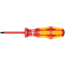 Tournevis VDE Wera avec manche Kraftform Plus multicomposant pour un travail rapide et en douceur : les zones dures permettent une vitesse de travail élevée alors que les zones tendres garantissent la transmission de couples élevés. Contrôle pièce à pièce à 10 000 V pour un travail en toute sécurité à la tension admissible de 1 000 V. Repéreur d'outils Take it easy avec code couleur en fonction des empreintes et indication de la taille pour trouver rapidement et facilement l'outil nécessaire. La forme hexagonale du manche empêche ce dernier de rouler sur le plan de travail.