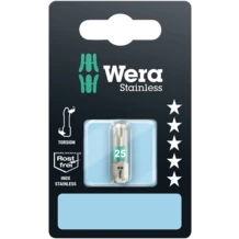 Embouts haute qualité en inox, pour vis à empreinte TORX®. Réalisés en acier inoxydable, les outils inox de Wera permettent d'éviter la rouille erratique disgracieuse. Avec zone Torsion : sur les embouts de la gamme Torsion, cette zone sert à amortir les pics de couple. L'usure précoce est évitée, la longévité de l'embout accrue. Hexagonal 1/4", convient aux porte-embouts répondant à la norme DIN ISO 1173-D 6,3.