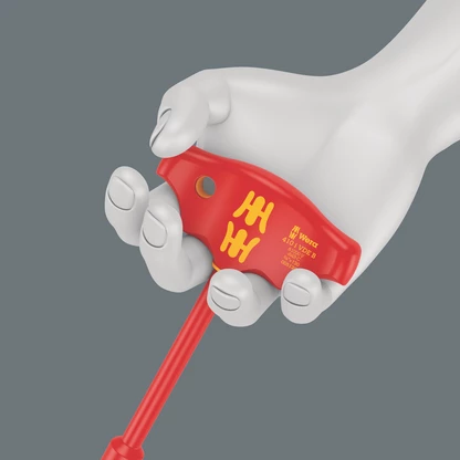 Le tournevis adaptateur isolé VDE à manche en T 410 i VDE B ne peut être utilisé qu’avec les douilles VDE 3/8" des séries Wera Zyklop VDE 8740, 8760, 8767 et 8790.