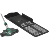 Le cliquet intégré à fine denture (80 dents/angle de reprise de 4,5°) simplifie et accélère le vissage. Plus besoin de désengager et repositionner l'outil. Le mécanisme de cliquet entièrement intégré dans le manche rend l'outil très pratique et le travail agréable. Avec levier d'inversion pour changer facilement de sens droite/gauche en un seul geste. La forme ergonomique du manche épouse bien la forme de la paume. Les doigts sont calés dans les arrondis. La main entière est en contact avec le manche, les déperditions par friction entre la main et le manche sont évitées. Porte-embouts pour embouts à emmanchement hexagonal 1/4" selon DIN ISO 1173-C 6,3 et E 6,3. Avec technologie Rapidaptor pour un changement ultrarapide des embouts.