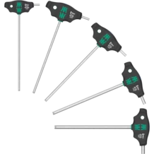 Jeu d'outils avec 5 tournevis à manche en T pour vis à six pans creux. Avec lames extra-longues pour les raccords vissés profondément encastrés. Hex-Plus offre de plus larges surfaces d'appui au niveau de la tête de vis. L'effet d'entaille est réduit au minimum, il est donc quasi impossible de détruire la tête de la vis. Avec fonction de retenue pour un maintien sûr de la vis à six pans creux sur l'outil. Particulièrement bien adapté aux applications de plomberie, chauffagerie et climatisation. Tournevis à manche en T : la forme idéale du manche permet de transmettre des couples de serrage et de desserrage particulièrement élevés. La forme ergonomique du manche épouse bien la forme de la paume. Les doigts sont calés dans les arrondis. La main entière est en contact avec le manche et les déperditions par friction entre la main et le manche sont évitées. Traitement de surface spécial des lames pour une protection anticorrosion accrue et un ajustement optimal dans la vis.
