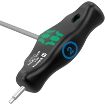 Tournevis à manche en T : la forme idéale du manche permet de transmettre des couples de serrage et de desserrage particulièrement élevés. La forme ergonomique du manche épouse bien la forme de la paume. Les doigts sont calés dans les arrondis. La main entière est en contact avec le manche et les déperditions par friction entre la main et le manche sont évitées. Traitement de surface spécial pour une protection anticorrosion accrue et un ajustement optimal dans la vis.