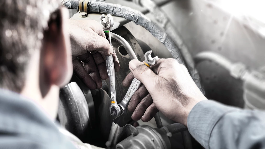 Au lieu des 60°, Joker offre un angle de reprise de 30° couplé à une géométrie 12 pans. Ce qui, en conjugaison avec sa tête droite, rend superflue l’inversion de la clé. Avec Joker, vous pouvez désormais desserrer, contre-serrer et retirer vis et écrous dans des situations où les outils classiques échouent. La conjugaison de la butée et du faible angle de reprise permet un travail efficace, y compris sur les raccords vissés.