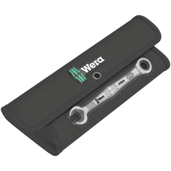 Jeu de clés mixtes à cliquet haute qualité signées Wera : Clés mixtes à cliquet Joker coudées côté cliquet et à levier d'inversion. Avec fonction de retenue assurée par une plaque métallique implantée dans la fourche, réduisant le risque d'égarer vis et écrous. La butée terminale intégrée est à même d'empêcher le glissement vertical hors de la tête de vis et permet le déploiement de couples élevés. La plaque métallique interchangeable située dans la fourche bloque les vis et les écrous grâce à ses dents extra-dures et diminue le risque de ripage. La morphologie dodécagonale engendre une liaison géométrique intime avec la vis ou l'écrou, réduisant le risque de ripage. L'angle de reprise de 30° seulement côté fourche permet d'éviter le retournement laborieux de la clé lors du vissage. e de reprise de 30° seulement côté fourche permet d'éviter le retournement laborieux de la clé lors du vissage. Mécanisme à inversion du cliquet à denture exceptionnellement fine (80 dents) côté oeillet, offrant un maximum de souplesse même aux endroits exigus. Précision du mécanisme du cliquet audible au déclic. Le robuste élément d'encliquetage en deux parties assure en outre une extrême stabilité. Côté cliquet coudé à 15° pour des travaux sûrs à couples élevés. Le forgeage à géométrie spécialement étudiée assure une transmission de couple élevée et une haute résistance à la flexion. Réalisation en acier chrome-molybdène performant, avec revêtement nickel-chrome pour une haute tenue à la corrosion. Avec repéreur d'outils Take it easy d'identification des tailles par couleur.