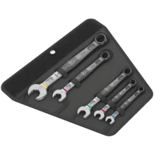 Comme les espaces de montage pour les travaux de vissage deviennent de plus en plus exigus, il faut des outils qui permettent aux utilisateurs de bien travailler même dans ces situations. Les espaces de montage étroits nécessitent des points d'ancrage supplémentaires de l'outil. Est-il possible de modifier les clés mixtes de manière à augmenter leurs possibilités d'ancrage ? La fourche pivotant à 7,5° et la forme dodécagonale permettent de doubler les points d'ancrage. Lors de la rotation répétée à 180° de la clé dans l'axe longitudinal pendant le vissage, il existe quatre possibilités d'ancrage et les écrous ou têtes de vis peuvent être "agrippés" tous les 15°. La Joker 6003 avec la forme astucieuse de sa fourche augmente considérablement le spectre d'utilisation dans les espaces de montage exigus. La Joker 6003 trouve pour ainsi dire d'elle-même le point d'ancrage suivant à chaque rotation. Le côté œil, fin mais robuste, est coudé à 15° par rapport à l'axe de l'outil. Le traitement de surface haut de gamme assure une protection anticorrosion supérieure durable. Avec repéreur d'outils Take it easy : code couleur en fonction de la taille. Avec leurs bandes à scratch au dos, les pochettes Joker peuvent se fixer au mur, sur une étagère ou une servante d'atelier et sont compatibles avec le système Wera 2go.