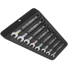 Comme les espaces de montage pour les travaux de vissage deviennent de plus en plus exigus, il faut des outils qui permettent aux utilisateurs de bien travailler même dans ces situations. Les espaces de montage étroits nécessitent des points d'ancrage supplémentaires de l'outil. Est-il possible de modifier les clés mixtes de manière à augmenter leurs possibilités d'ancrage ? La fourche pivotant à 7,5° et la forme dodécagonale permettent de doubler les points d'ancrage. Lors de la rotation répétée à 180° de la clé dans l'axe longitudinal pendant le vissage, il existe quatre possibilités d'ancrage et les écrous ou têtes de vis peuvent être "agrippés" tous les 15°. La Joker 6003 avec la forme astucieuse de sa fourche augmente considérablement le spectre d'utilisation dans les espaces de montage exigus. La Joker 6003 trouve pour ainsi dire d'elle-même le point d'ancrage suivant à chaque rotation. Le côté œil, fin mais robuste, est coudé à 15° par rapport à l'axe de l'outil. Le traitement de surface haut de gamme assure une protection anticorrosion supérieure durable. Avec repéreur d'outils Take it easy : code couleur en fonction de la taille. Avec leurs bandes à scratch au dos, les pochettes Joker peuvent se fixer au mur, sur une étagère ou une servante d'atelier et sont compatibles avec le système Wera 2go.