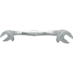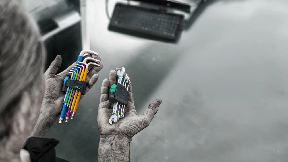 Comme les espaces de montage pour les travaux de vissage deviennent de plus en plus exigus, il faut des outils qui permettent aux utilisateurs de bien travailler même dans ces situations. Les espaces de montage étroits nécessitent des points d'ancrage supplémentaires de l'outil. Est-il possible de modifier les clés mixtes de manière à augmenter leurs possibilités d'ancrage ? Les fourches coudées à 7,5° et la forme dodécagonale permettent de doubler les points d'ancrage. Lors de la rotation répétée à 180° de la clé dans l'axe longitudinal pendant le vissage, il existe quatre possibilités d'ancrage et les écrous ou têtes de vis peuvent être "agrippés" tous les 15°. La Joker 6005 avec la forme astucieuse de sa fourche augmente considérablement le spectre d'utilisation dans les espaces de montage exigus. La Joker 6005 trouve pour ainsi dire d'elle-même le point d'ancrage suivant à chaque rotation. Le traitement de surface haut de gamme assure une protection anticorrosion supérieure durable. Avec repéreur d'outils Take it easy : code couleur en fonction de la taille. Le matériau inusable du clip maintient fermement les clés et facilite leur retrait.