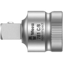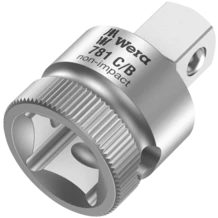 Adaptateur carré femelle 1/2" vers carré mâle 3/8". Pour l'utilisation manuelle et mécanique (non impact), avec gorge à bille pour bloquer la douille en toute sécurité, moletage à l'arrière pour une meilleure prise en mode manuel ; chrome-vanadium, chromé mat.
