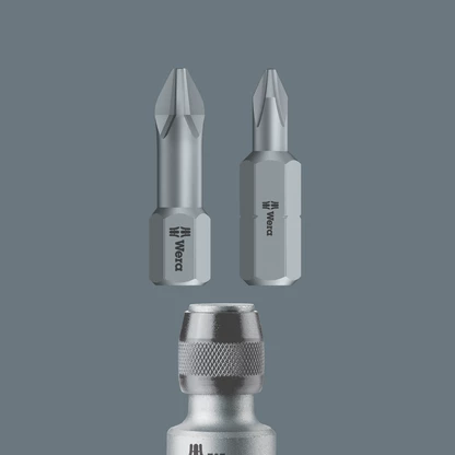 Pour une jonction ferme, non vacillante entre le support et l’embout. Découplage très rapide : il suffit de faire coulisser la douille vers l’avant et de changer l’embout. Version non-magnétique pour éviter l'aimantation de limaille.
