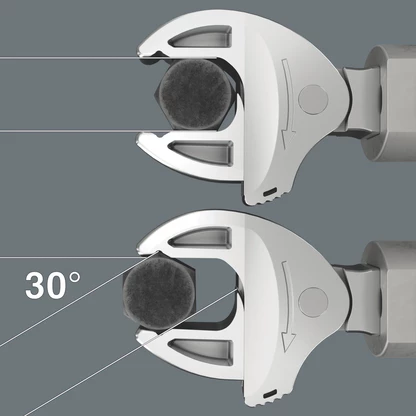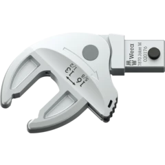 Clé à fourche interchangeable auto-ajustable pour les vis à tête hexagonale et écrous hexagonaux, pour les clés dynamométriques de la série Click-Torque X et XP avec admission 9x12 mm. Couvre toutes les dimensions métriques et impériales dans le domaine d'utilisation correspondant. Les mors parallèles réglables en continu remplacent plusieurs clés mixtes de dimension unique. La taille nécessaire se règle sans paliers automatiquement au contact des vis ou des écrous hexagonaux. Le mécanisme de levier intégré serre fermement la vis ou l'écrou entre les mors, ce qui réduit considérablement le risque de dérapage ou d'endommagement de la pièce. Grâce à la fonction cliquet, le vissage se fait rapidement, uniformément et sans désengagement de la clé. Les prismes permettent un angle de reprise de seulement 30°.
