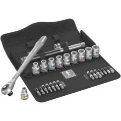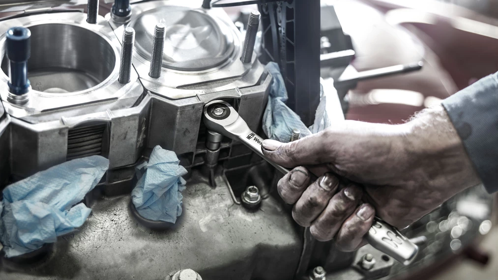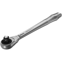 Les assemblages mécaniques sont de plus en plus compacts et les cliquets souvent trop massifs. Les cliquets aussi arrivent à leurs limites à l‘étroit. Wera a résolu ce problème. Pour cela, nos développeurs ont étudiés des situations de travail dans des environnements exigus. En résulte le cliquet Zyklop Metal, extrêmement mince et robuste, mais relativement long. Pour que la douille ne s‘égare pas et pour éviter toute inversion par inadvertance, le meilleur choix, c‘est le cliquet Zyklop Metal Push.
