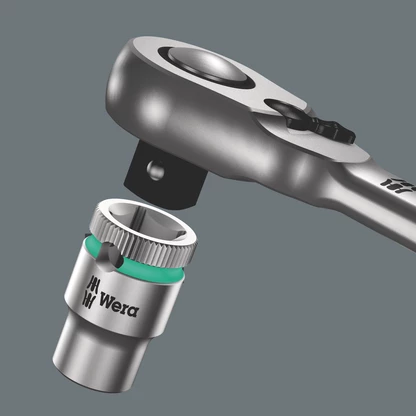 Les assemblages mécaniques sont de plus en plus compacts et les cliquets souvent trop massifs. Les cliquets aussi arrivent à leurs limites à l‘étroit. Wera a résolu ce problème. Pour cela, nos développeurs ont étudiés des situations de travail dans des environnements exigus. En résulte le cliquet Zyklop Metal, extrêmement mince et robuste, mais relativement long. Changer le sens de vissage n'a jamais été aussi simple qu'avec le cliquet Zyklop Metal Switch.