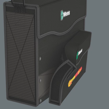 La trousse textile de la composition 8100 SB VDE 1 est compatible avec le système Wera 2go. Son scratch facilite le rangement à l’atelier, sur la servante ou dans le véhicule.