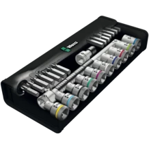 Le système Take it easy une couleur = une dimension afin de trouver très facilement l’outil nécessaire. Système de guidage en fonction des dimensions des outils six pans (clés mâles coudées, douille-embouts Zyklop), vis et écrous hexagonaux (clés Joker, douilles Zyklop et douille-embouts Zyklop a fonction de retenue) et vis TORX® (clés mâles coudées, douille-embouts Zyklop).