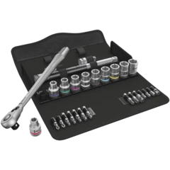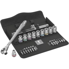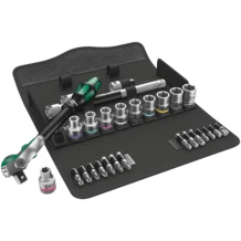 Agencement incroyablement compact, permettant de loger un grand nombre d'outils dans un espace réduit. Les housses textiles d'un genre inédit permettent de ré-appréhender totalement le concept d'"assortiment cliquet" et offrent une robustesse et une longévité remarquables. Positionnable debout pour un stockage bien ordonné sur l'étagère à outils. Protection accrue des surfaces grâce au matériau extérieur textile. Faible encombrement et poids réduit, pour un net gain de mobilité. Avec repéreur d'outil Take it easy : identification des tailles par couleur.