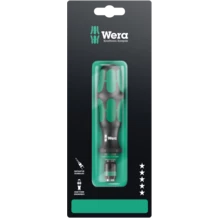 Porte-embouts haute qualité. Escamotable dans le manche, la lame baïonnette avec mandrin à serrage rapide autorise une grande vitesse de manœuvre, même en situation de travail confinée. Le mandrin à serrage rapide Rapidaptor permet un échange éclair des embouts, sans outil auxiliaire. Le puissant aimant permanent assure aux embouts un maintien à toute épreuve. Manche Kraftform Plus pour un travail agréable et ergonomique, bannissant ampoules et callosités. Zones dures pour une haute vitesse de travail, les zones tendres garantissant quant à elles une transmission de couple élevée. Convient pour embouts à emmanchement hexagonal 1/4" répondant aux normes DIN ISO 1173-C 6,3 et E 6,3 (ISO 1173).