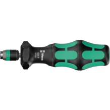 De nombreux utilisateurs souhaiteraient pouvoir effectuer des opérations de vissage plus rapidement sans devoir faire de compromis. Il faut un tournevis précis offrant la puissance nécessaire au vissage final et qui soit en outre bien plus rapide qu'un tournevis conventionnel. Un système planétaire pouvant être activé au besoin est la solution : intégré au manche du tournevis, il multiplie mécaniquement par 4 la vitesse de travail lors d'un vissage sans résistance. Une main maintient l'avant du manche alors que l'autre tourne la partie supérieure. La fonction Turbo peut être activée ou désactivée par simple pression d'un bouton. Il est recommandé de désactiver le turbo pour serrage ou desserer avec un couple élevé, comme dans le cas d'un vissage dans le bois ou pour un parfait ajustage. Le planétaire en acier ne nécessite aucune maintenance et offre une très grand longévité et une résitance de 14 Nm en mode bloqué. Le porte-embouts Rapidaptor permet d'utiliser le Kraftform Turbo avec tous les embouts 6 pans 1/4" standard pour différentes empreintes. Grâce à la fonction Rapidaptor, les embouts peuvent être insérés directement et retirés facilement en faisant coulisser la douille vers l'avant, le tout avec une seule main.