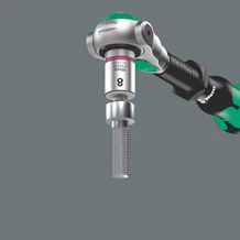 Le serrage de la vis à six pans creux sur la douille-embouts est assuré par une bille élastique en contact avec l’embout. Particulièrement utile dans les espaces de travail d’accès difficile, où l’on ne peut pas se servir de l’autre main pour maintenir la vis.