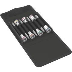 Douille-embout avec emmanchement 3/8" et fonction de retenue pour un vissage particulièrement confortable avec un risque réduit de perdre la vis à l'approche de la pièce. Repéreur d'outils Take it easy avec code couleur en fonction de la taille pour trouver rapidement et facilement l'outil nécessaire.