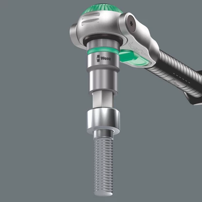 Le serrage de la vis à six pans creux sur la douille-embouts est assuré par une bille élastique en contact avec l’embout. Particulièrement utile dans les espaces de travail d’accès difficile, où l’on ne peut pas se servir de l’autre main pour maintenir la vis.