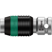 Adaptateur carré vers hexagonal. Pour embouts hexagonaux 1/4" selon DIN ISO 1173-C 6,3 et E 6,3 et les séries Wera 1 et 4. Avec mandrin à serrage rapide.