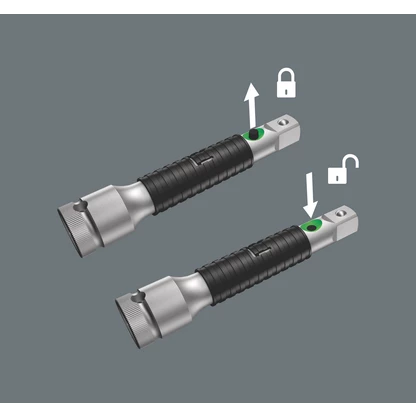 Les rallonges des séries haut de gamme sont par ailleurs équipées du système « flexible-lock ». Son activation permet de fixer aussi longtemps que nécessaire les douilles sur la rallonge. L'outil ne peut plus être égaré ou tomber. Lorsque le système est désactivé, les douilles peuvent être emboîtées et échangées très rapidement.