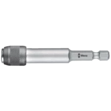 Porte-embouts universel pour l'admission d'embouts à emmanchement hexagonal 1/4" conformes à la norme DIN ISO 1173-C 6,3. Avec mandrin à serrage rapide pour un échange quasi instantané des embouts. Hexagonal 1/4", convient pour visseuses à admission répondant à la norme DIN ISO 1173-F 6,3.