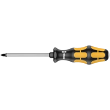 Tournevis-burin Wera pour visser, buriner, mortaiser et desserrer les vis bloquées. Avec manche Kraftform multicomposant pour un travail rapide et en douceur. Kraftform Plus : les zones dures permettent une vitesse de travail élevée alors que les zones tendres garantissent la transmission de couples élevés. Avec lame hexagonale traversante en matériau pour embouts d'où une transmission de force sans déperdition, même sous les coups de marteau. La finition extra-rigide du matériau empêche l'éclatement ou la rupture de la lame. Avec zone de frappe intégrée, pour une longévité accrue et une diminution du risque d'éclats. Le plot hexagonal intégré permet de transmettre des couples plus élevés avec une clé à fourche ou polygonale. La pointe Wera Black Point, conjuguée à un procédé de trempe sophistiqué, garantit une grande longévité, une protection anticorrosion accrue et un ajustement parfait. La forme hexagonale du manche empêche ce dernier de rouler sur le plan de travail.