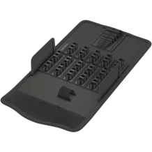 Housse textile robuste pour le rangement compact d'outils ; idéale pour les déplacements, car le matériau utilisé est léger et résistant ; pour porte-embouts et embouts 1/4" ; entre autres 30 emplacements pour embouts d'une longueur de 25 mm et 13 emplacements pour embouts d'une longueur de 50 mm ; vide.