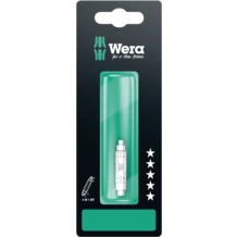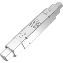 Un seul embout suffit pour quatre profils de vis différents (vis à six pans creux tailles 3,0 ; 4,0 ; 5,0 ; 6,0). Réduction significative du poids de plus de 50 %. Le fonctionnement des gros profils est possible grâce au montage sur ressort des petites pointes. L'embout dispose d'un emmanchement hexagonal 1/4" (série Wera 1), il est donc aussi utilisable avec par ex. les cliquets à embouts et manches avec Rapidaptor.
