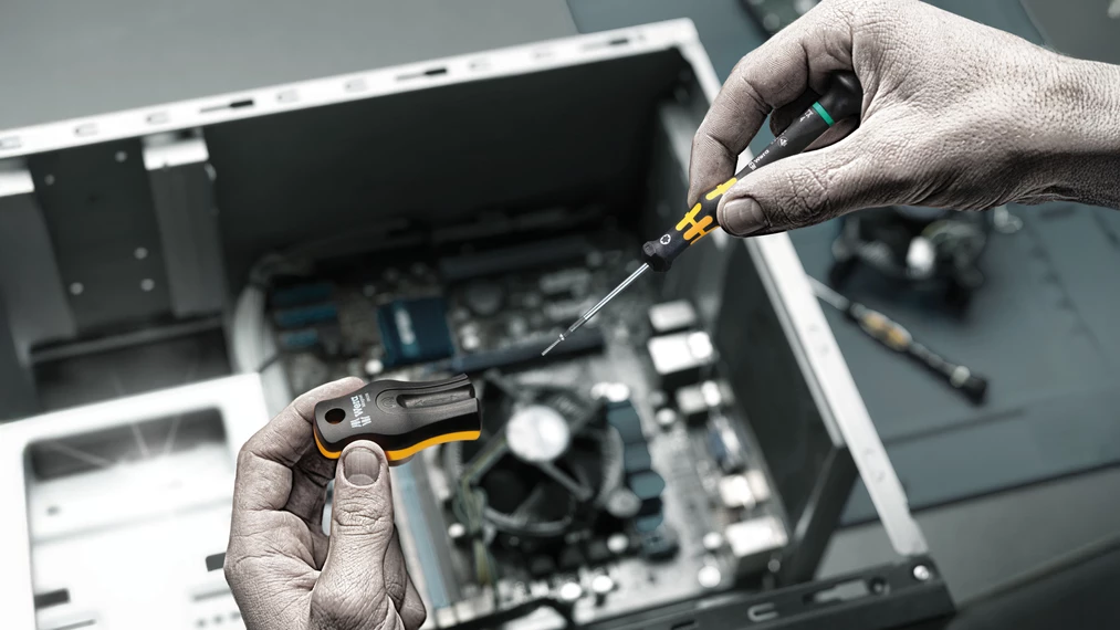 La résistance électrique superficielle du matériau Wera ESD est ≤ 109 ohms. Les composants sont ainsi protégés à coup sûr contre l’électricité statique et les dommages corollaires.