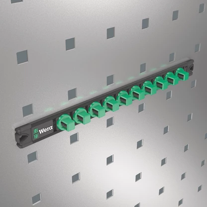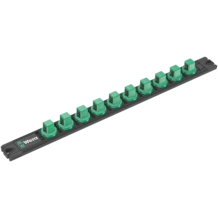 1 barre magnétique pour douilles, vide, pouvant accueillir jusqu'à 10 douilles 1/2". La barre magnétique permet une fixation temporaire sur les surfaces métalliques et la fonction Twist to unlock le maintien et le retrait en toute sécurité des douilles.
