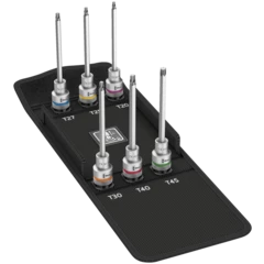 Jeu de clés mâles coudées Wera haute qualité, pour vis à empreinte TORX®. Avec fonction de retenue pour vis TORX® répondant aux spécifications de la Sté. Acument Intellectual Properties sur le bras long. La finition BlackLaser assure une excellente protection des surfaces, y compris contre la corrosion, ainsi qu'une haute longévité. Avec repéreur d'outils Take it easy d'identification des tailles par couleur. Sous clip très pratique, réalisé dans un matériau inusable garantissant un maintien sûr et durable des clés tout en facilitant leur retrait.