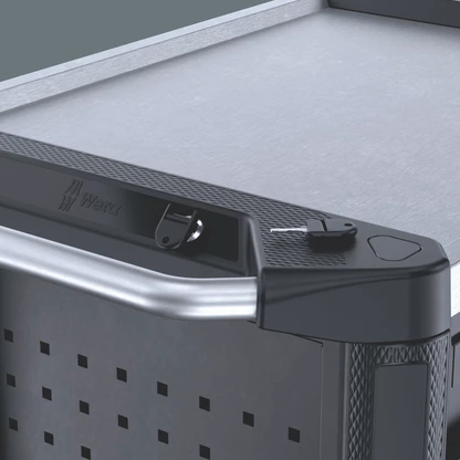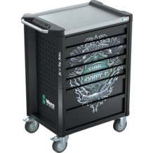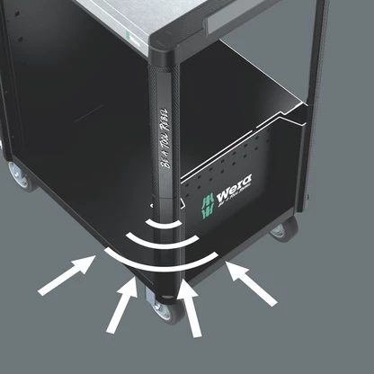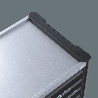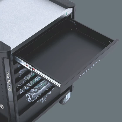 Servante d'atelier exclusive avec design Tool Rebel. Plan de dépose et de travail en acier inoxydable ; entièrement étanche pour protéger l'intérieur de la servante par ex. en cas de fuites de liquides. Cinq tiroirs plats et deux tiroirs hauts offrent un rangement efficace et mobile des outils et du matériel. Conception extrêmement robuste avec sa double paroi et l'assemblage entièrement soudé de tout le corps. Protection des arêtes aux quatre coins pour une protection optimale contre les chocs. Pour le quotidien exigeant du travail en atelier. Équipée de 6 inserts en mousse Wera : 9710 insert en mousse pour jeu de tournevis 1, 9720 insert en mousse pour jeu avec cliquet 8000 A Zyklop (1/4") 1, 9722 insert en mousse pour jeu avec cliquet 8000 C Zyklop (1/2") 1, 9731 insert en mousse pour jeu de clés mixtes 6003 Joker 1, 9740 insert en mousse pour jeu de clés coudées 1, 9750 insert en mousse pour jeu Kraftform Kompakt et Tool-Check PLUS 1.
