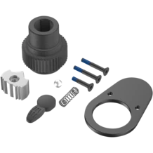 Composé de : ressort, bille d'acier, levier d'inversion, élément de verrouillage / denture, vis, partie interne du cliquet à six pans creux 1/4", capot de tête de cliquet, 2 vis pour logement de cliquet.