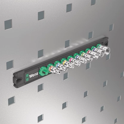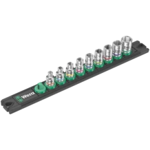 Barre magnétique avec 9 douilles pour l'utilisation manuelle et mécanique (sans chocs), 1/4". Un mécanisme de rotation souple assure un maintien sûr et un retrait facile des douilles. Système Take it easy une couleur en fonction de la taille pour trouver rapidement et facilement l'outil nécessaire. La barre magnétique permet une fixation temporaire sur les surfaces métalliques et la fonction Twist to unlock le maintien et le retrait en toute sécurité des douilles.