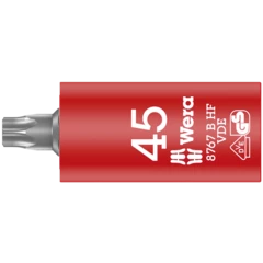 Les outils TORX® HF développés par Wera se distinguent par l‘optimisation géométrique du profil TORX® d‘origine. En résulte un coincement mécanique entre l’empreinte de l’embout et l‘empreinte de la vis, les vis TORX® sont maintenues en toute sécurité sur l‘outil conformément à la spécification Acument Intellectual Properties ! Particulièrement utile dans les espaces restreints où l‘on ne peut pas utiliser la deuxième main pour maintenir la vis.
