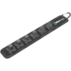 Sangle porte-outils en textile très résistant et design Wera, avec 6 douille-embouts, sur un espace réduit. Le mécanisme "Twist to Unlock", très souple, assure un maintien en toute sécurité et un retrait facile des douilles. Avec le système Take it easy une couleur = une dimension afin de trouver très facilement l'outil nécessaire. Un mousqueton permet la fixation au passant de ceinture ou à une sacoche. Douille-embouts particulièrement courtes et robustes présentant tous les avantages de la technologie Wera. Embout-douille à fonction de retenue pour un vissage simple sans risque de perdre la vis lors du montage. Verso en scratch pour une fixation simple, au mur, à l'étagère, à la servante d'atelier ou au système de transport d'outils Wera 2go.