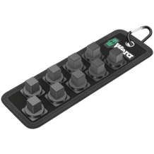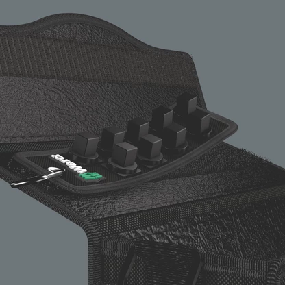 Sangle textile (Belt) au design Wera pour 9 douilles Impaktor (1/2") dans un volume restreint. Un mécanisme sans contrainte pour maintenir et prélever les douilles sans effort. Un mousqueton pour passant de ceinture ou trousse à outils et l'arrière en scratch et scratch autocollant pour une fixation simple au mur, à la servante… ou aux produits Wera 2go. Mécanisme sans contrainte pour maintenir et prélever les douilles sans effort.