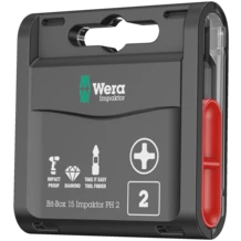 Réalisation : tirant parti à fond des propriétés du matériau et caractérisée par un ajustement géométrique optimal, la technologie Impaktor offre des durées de vie supérieures à la moyenne, même en cas de contraintes extrêmes ; particulièrement indiquée pour l'emploi avec des visseuses à chocs usuelles ; le revêtement diamant réduit considérablement le risque de ripage. Banderole de couleur rouge (= profil Phillips) avec marquage de la taille pour trouver facilement le bon outil.