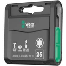 Réalisation : tirant parti à fond des propriétés du matériau et caractérisée par un ajustement géométrique optimal, la technologie Impaktor offre des durées de vie supérieures à la moyenne, même en cas de contraintes extrêmes ; particulièrement indiquée pour l'emploi avec des visseuses à chocs usuelles ; le revêtement diamant réduit considérablement le risque de ripage. Banderole de couleur verte (= profil TORX®) avec marquage de la taille pour trouver facilement le bon outil.