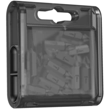 Le fermoir coulissant permet une distribution et un rangement simple des embouts. Le verso transparent permet de contrôler astucieusement la quantité restante.