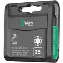 Les outils TORX® HF développés par Wera se distinguent par l‘optimisation géométrique du profil TORX® d‘origine. En résulte un coincement mécanique entre l’empreinte de l’embout et l‘empreinte de la vis, les vis TORX® sont maintenues en toute sécurité sur l‘outil conformément à la spécification Acument Intellectual Properties ! Particulièrement utile dans les espaces restreints où l‘on ne peut pas utiliser la deuxième main pour maintenir la vis.