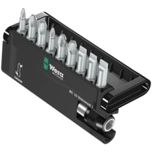 Robuste Bit-Check signé Wera. Les Bit-Checks permettent d'embrasser d'un coup d'œil les outils présents. Les embouts dont on n'a pas besoin restent cantonnés dans l'assortiment et ne sont pas égarés. Transport aisé, dans la poche de chemise par ex. Incluant 1 porte-embouts universel avec puissant aimant permanent et mandrin à serrage rapide pour l'admission d'embouts à emmanchement hexagonal 1/4" répondant à la norme DIN ISO 1173-C 6,3. Possibilité d'utilisation sur visseuse ou porte-mèches de perceuse électronique. Avec embouts Torsion, contre l'usure précoce. Extra-rigides, pour emploi universel.