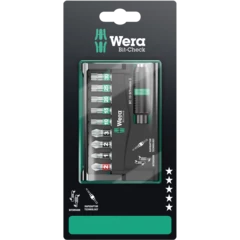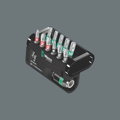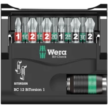 Embouts extra-rigides, pour emploi universel. Embouts BiTorsion avec zone de torsion, dans laquelle est rejetée l'énergie cinétique lors des pics de charge. D'où un gain significatif de longévité du produit. Durée de vie maximale en combinaison avec le porte-embouts assorti. Équipé de la technologie Rapidaptor, permettant l'admission des embouts sans même avoir à actionner la douille. Leur retrait s'effectue par simple poussée vers l'avant - pour un échange éclair des embouts, même d'une seule main. Pour l'admission d'embouts à emmanchement hexagonal 1/4" répondant aux normes DIN ISO 1173-C 6,3 et E 6,3. Possibilité d'utilisation sur visseuse ou porte-mèches de perceuse électronique. Le Bit-Check multicomposants convainc par son faible poids et son encombrement minimal. Le matériau souple composant la partie inférieure du Bit-Check permet de coincer les embouts en toute sécurité dans leur rangement, tout en assurant un prélèvement facile. E17
