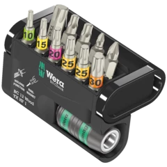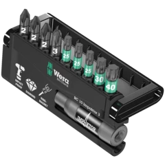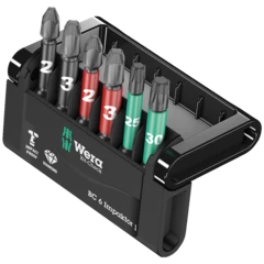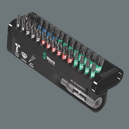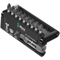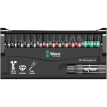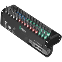 1 porte-embouts Impaktor à jonc d'arrêt et aimant annulaire, 29 embouts Impaktor. Tirant parti à fond des propriétés du matériau et caractérisée par un ajustement géométrique optimal, la technologie Impaktor offre des durées de vie supérieures à la moyenne, même face à des contraintes extrêmes ; particulièrement indiquée pour l'emploi avec visseuses à impact/percussion usuelles. Porte-embouts à aimant annulaire, pour un maintien aisé des vis longues et lourdes, idéal aussi pour les travaux au-dessus de la tête. Le revêtement diamanté rugueux garnissant la pointe des embouts permet, grâce à une résistance frictionnelle accrue, d'éviter le ripage hors de la vis.