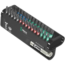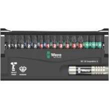 1 porte-embouts Impaktor à jonc d'arrêt et aimant, 29 embouts Impaktor. Tirant parti à fond des propriétés du matériau et caractérisée par un ajustement géométrique optimal, la technologie Impaktor offre des durées de vie supérieures à la moyenne, même face à des contraintes extrêmes ; particulièrement indiquée pour l'emploi avec visseuses à impact/percussion usuelles. Porte-embouts à aimant annulaire, pour un maintien aisé des vis longues et lourdes, idéal aussi pour les travaux au-dessus de la tête. Le revêtement diamanté rugueux garnissant la pointe des embouts permet, grâce à une résistance frictionnelle accrue, d'éviter le ripage hors de la vis.